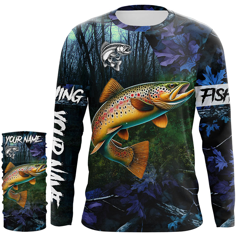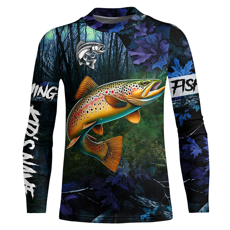 Brown trout Fishing blue camo fishing team trout Custom Long Sleeve UV protection fishing shirts NQS6071