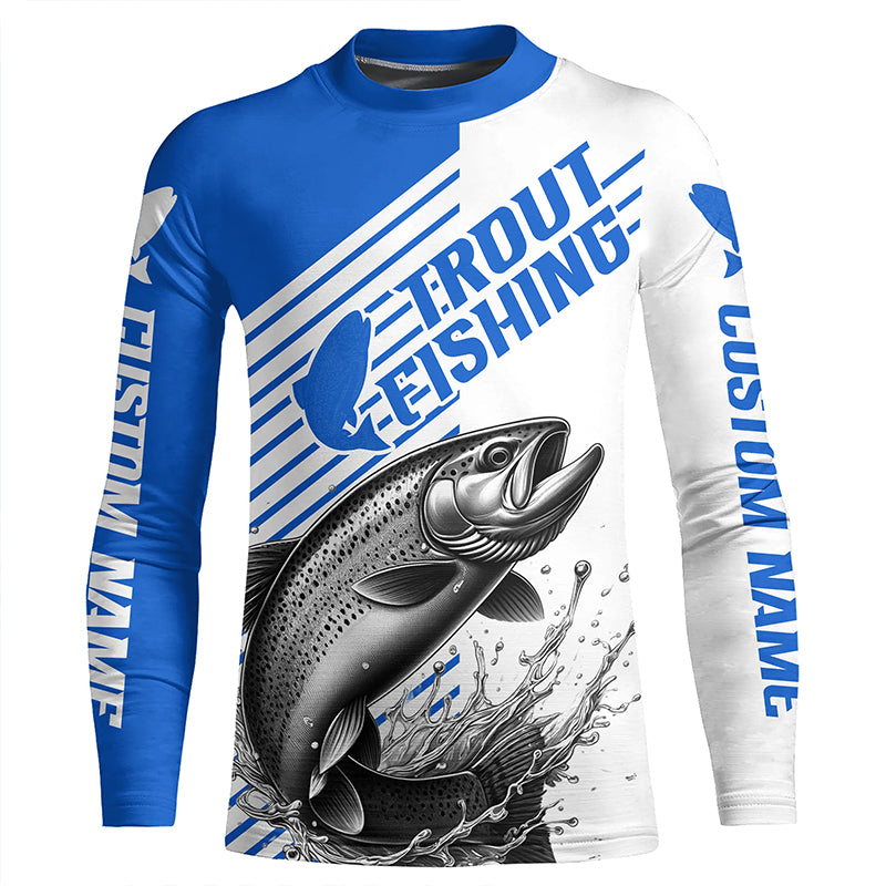 Trout Fishing Customized Name Long Sleeve Tournament Shirts, Lake Trout Fishing Jerseys | Blue IPHW6653