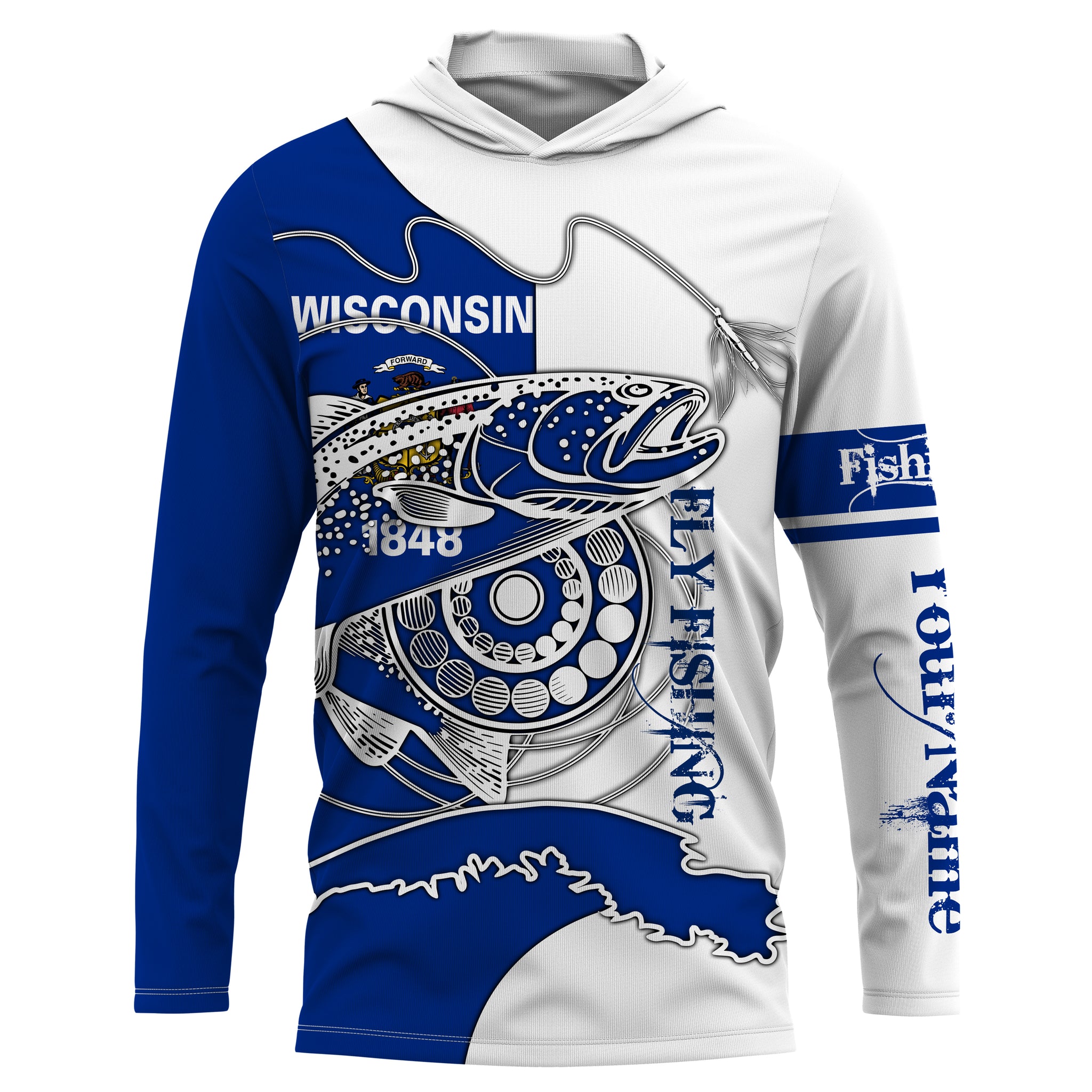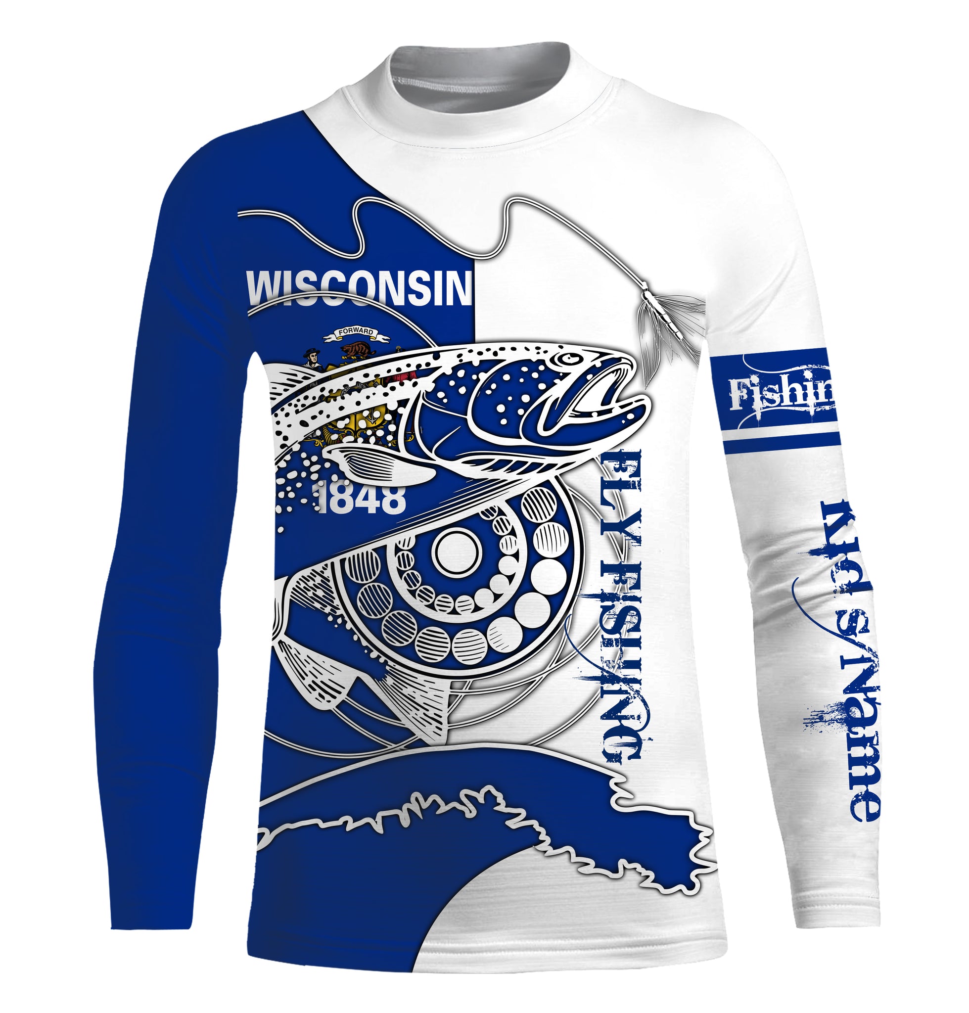 Trouts fly fishing WI Wisconsin custom name sun protection UPF 30+ performance fishing shirts NQS3603