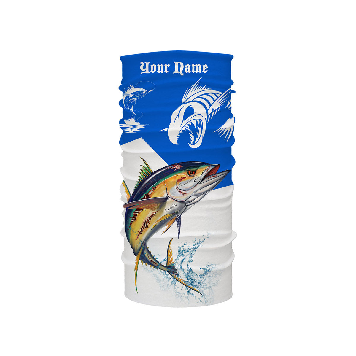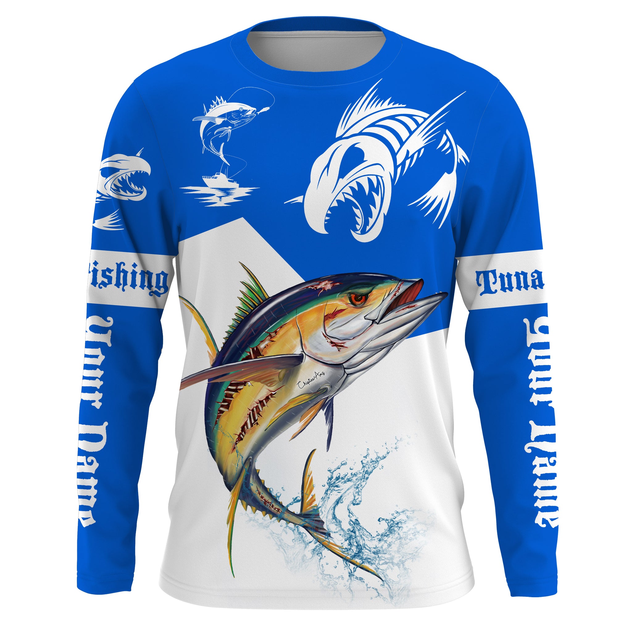 Angry Tuna fishing Custom Long sleeve Fishing Shirts, Tuna fish skeleton fishing jerseys | Blue NQS4235