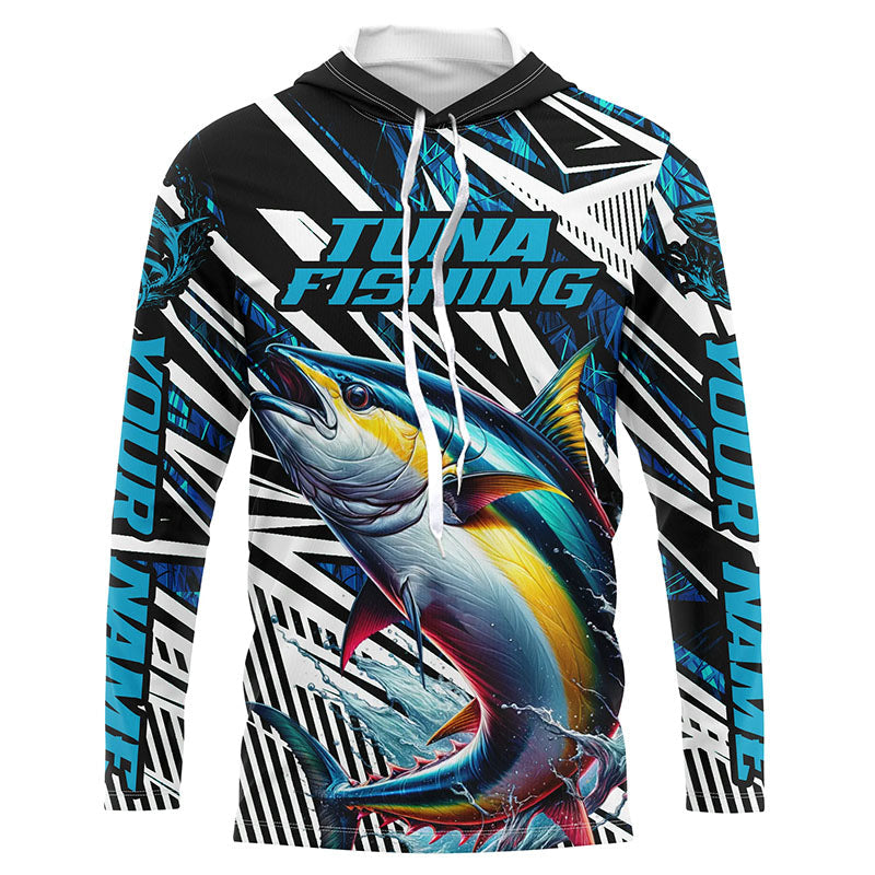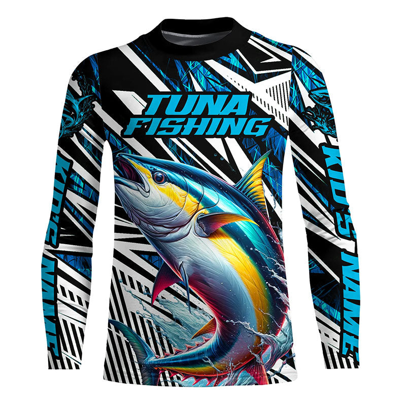 Custom Yellowfin Tuna Long Sleeve Tournament Fishing Shirts, Tuna Fishing Jerseys | Blue Camo IPHW6125