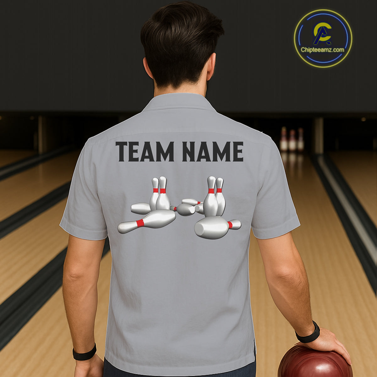 Black and Gray Retro Bowling Hawaiian Shirts Custom Vintage Bowling Team Button up shirt NQS11156