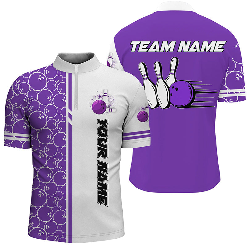 Men Bowling Polo, 1/4 Zip Shirt Custom white & purple camo vintage bowling shirts, mens bowling jersey NQS8178