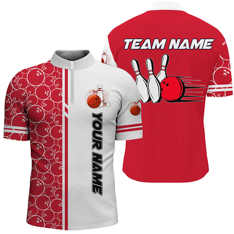 Men Bowling Polo, 1/4 Zip Shirt Custom white & red camo vintage bowling shirts, mens bowling jersey NQS8177