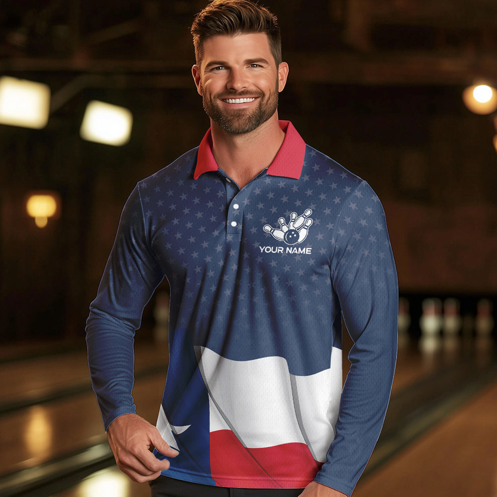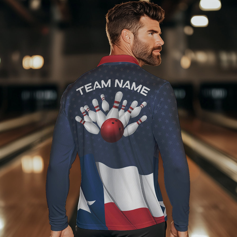 Men's bowling Polo, Quarter Zip shirts Custom name Texas flag vintage Bowling Team Bowlers Jerseys NQS9768