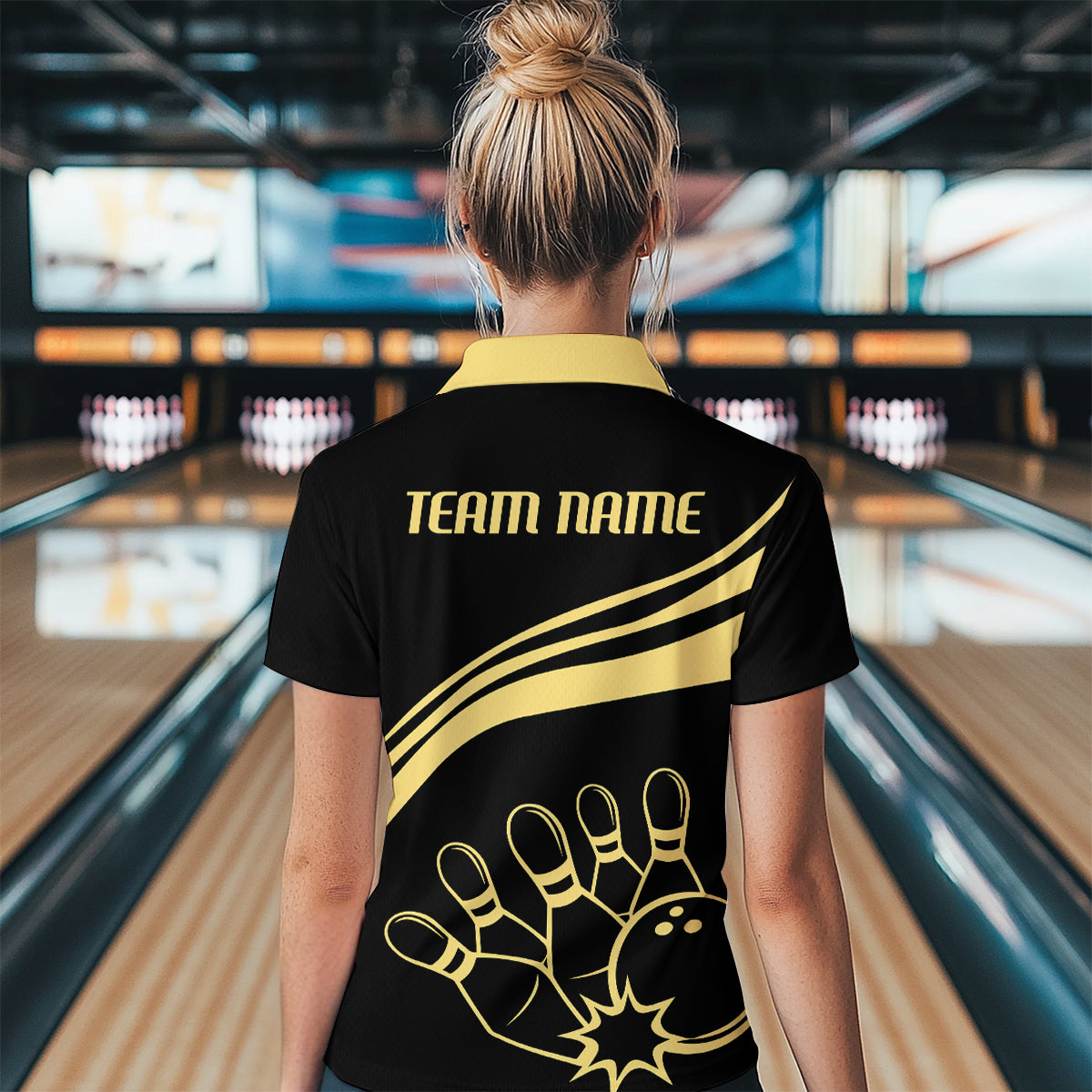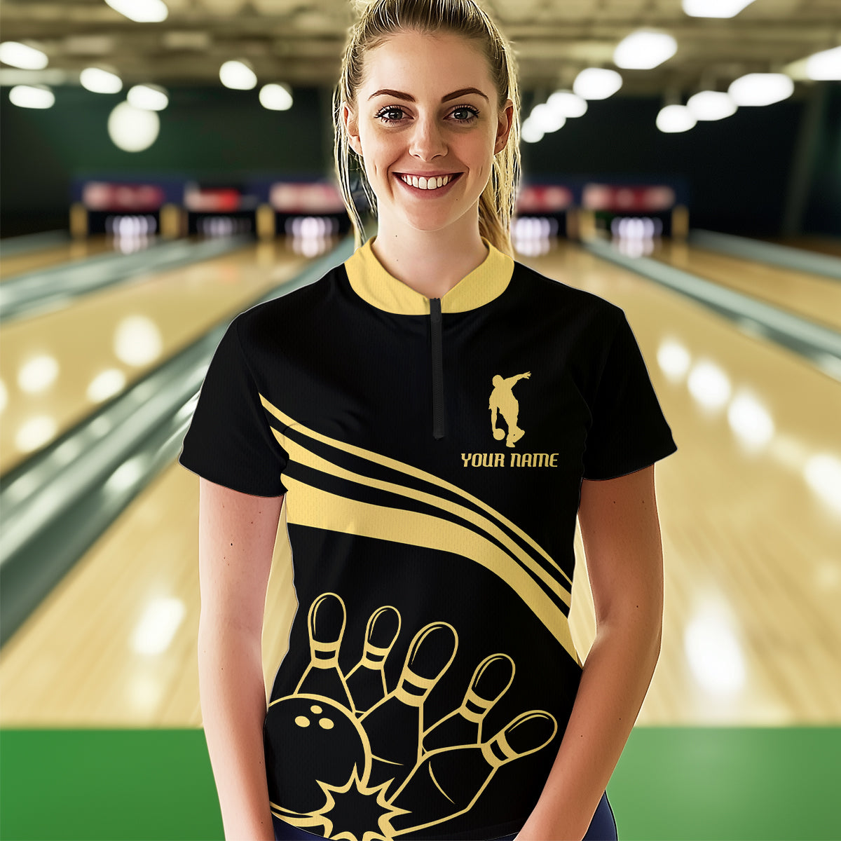 Black&Gold Bowling Quarter-Zip Shirt Women Custom Bowling Jersey Vintage Bowling Team League Shirt BDT117