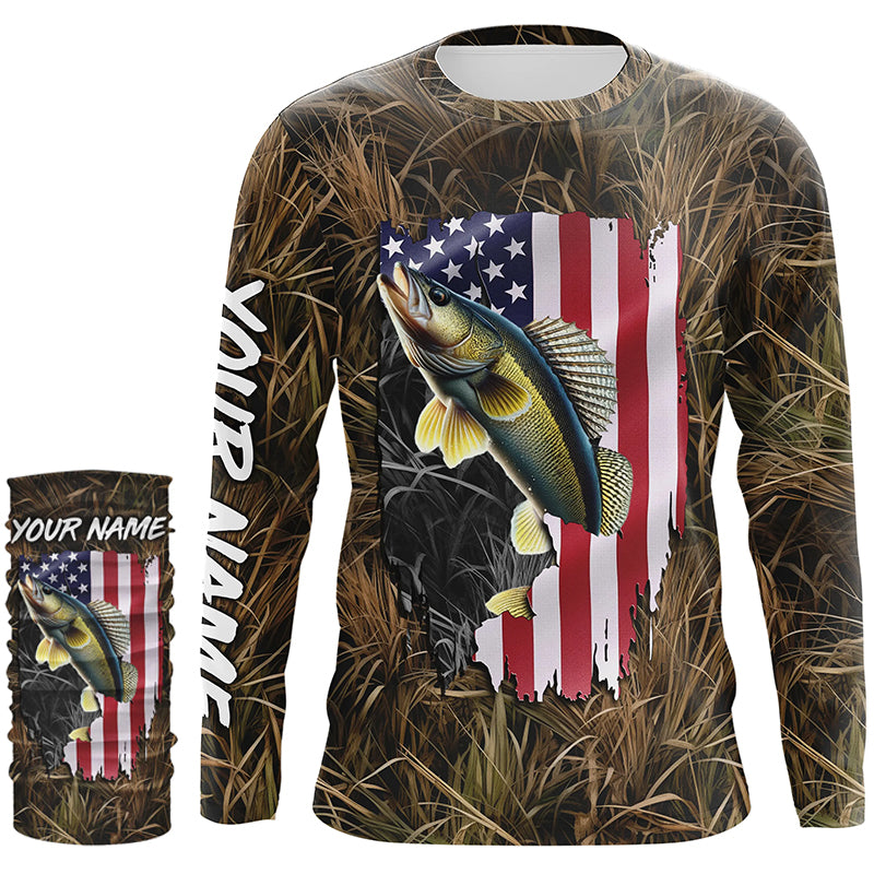 Custom American Walleye fishing camo shirts for men Performance Long Sleeve fishing shirt NQS1032