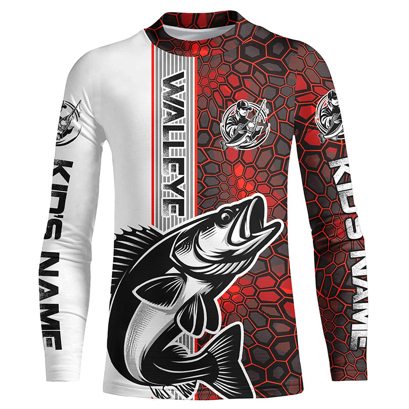 Pesonalized Walleye Fishing Jerseys, Walleye Long Sleeve Tournament Fishing Shirts | Red Camo IPHW5831