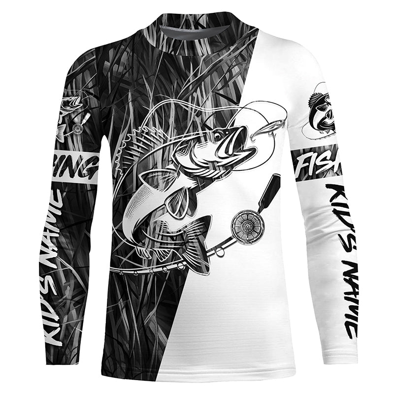 Walleye Fishing Gray Camo Custom Long Sleeve Fishing Shirts, Walleye Tournament Fishing Jerseys IPHW6061