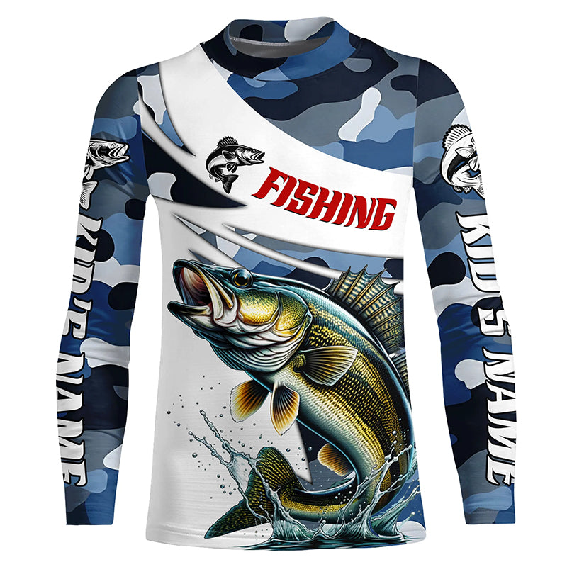 Personalized Walleye Fishing Jerseys, Camo Walleye Fishing Long Sleeve Tournament Shirts IPHW6310