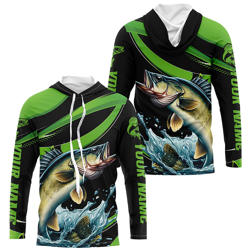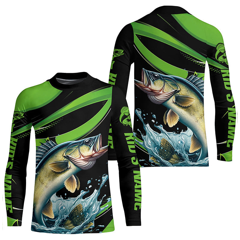 Black And Green Custom Walleye Fishing Jerseys, Walleye Long Sleeve Tournament Fishing Shirts IPHW7001