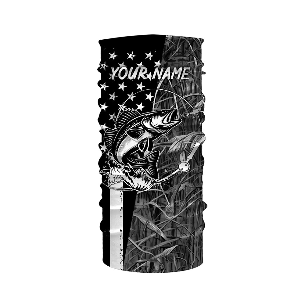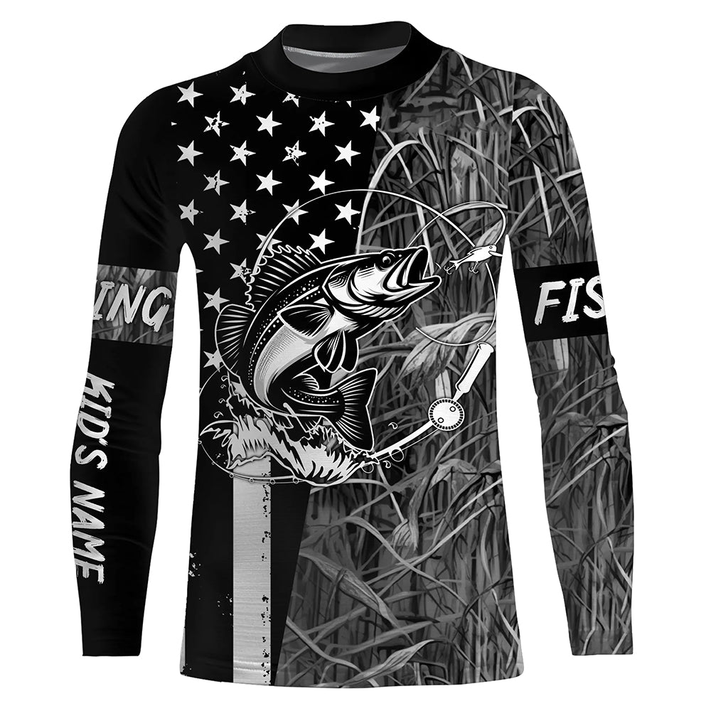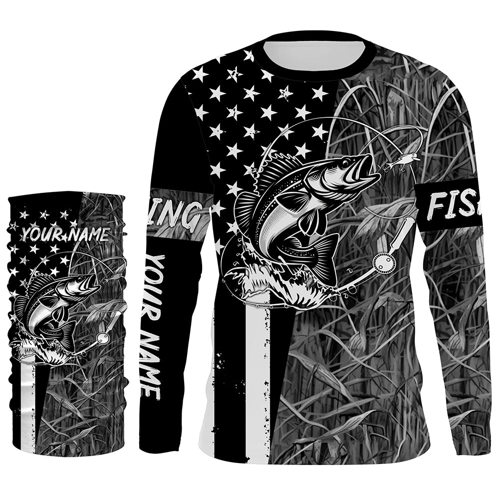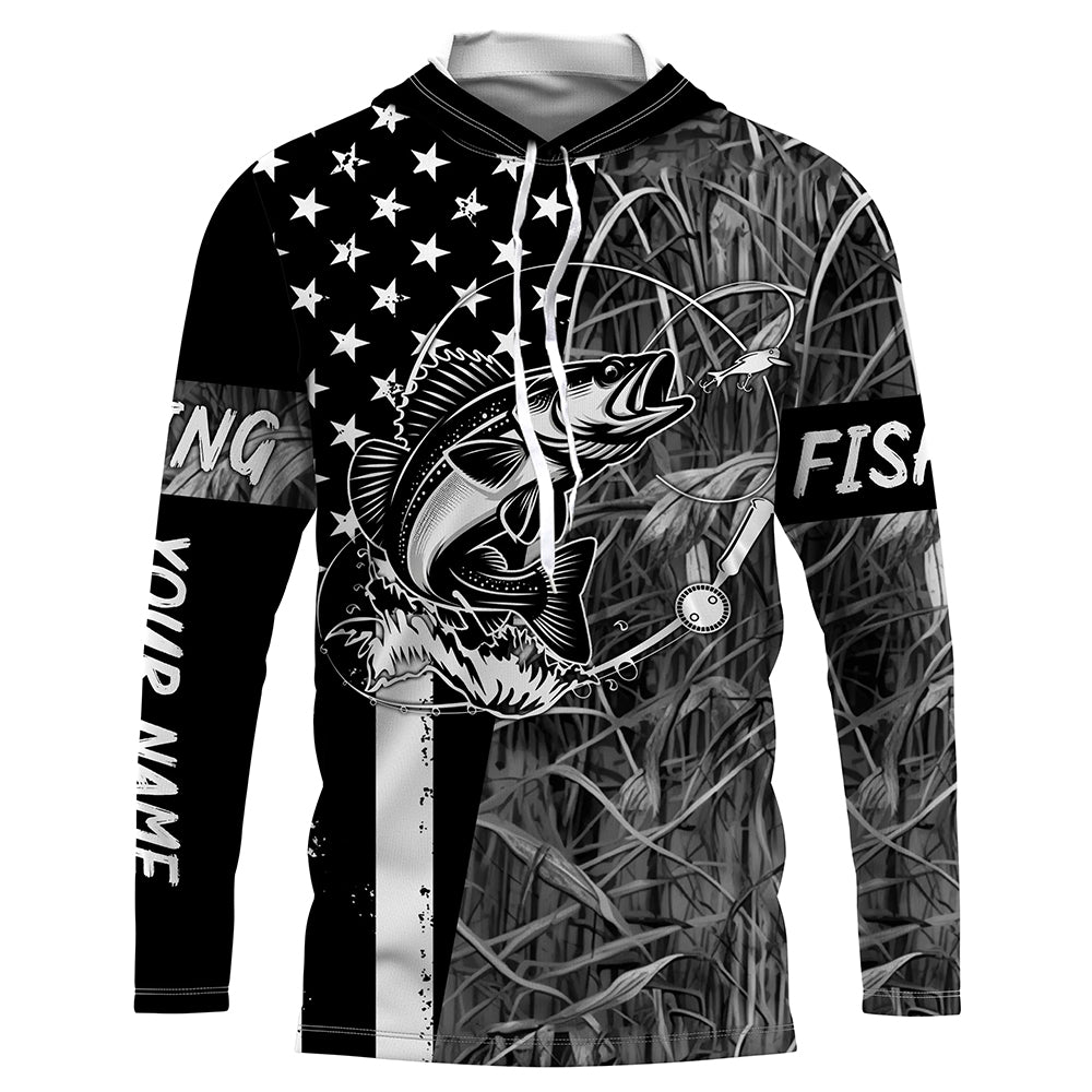 Walleye fishing custom name black American flag camo performance long sleeve fishing shirts for men NQSD99