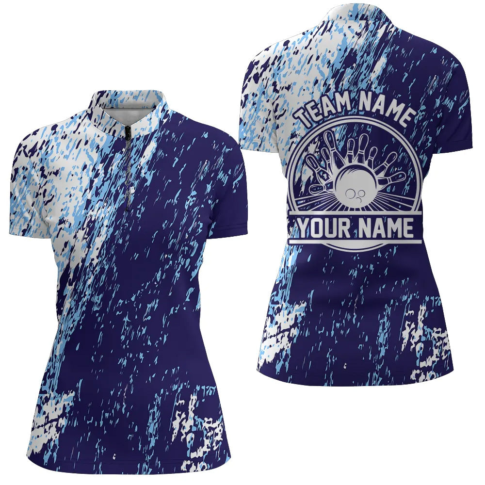 Personalized Bowling Shirts For Women, Bowling Balls And Pins Bowling Team Shirts | Blue IPHW4506