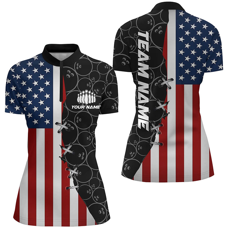 Us Flag Custom Bowling Team Shirts For Women Bowling Ball Pattern Patriotic Gifts  IPHW5479