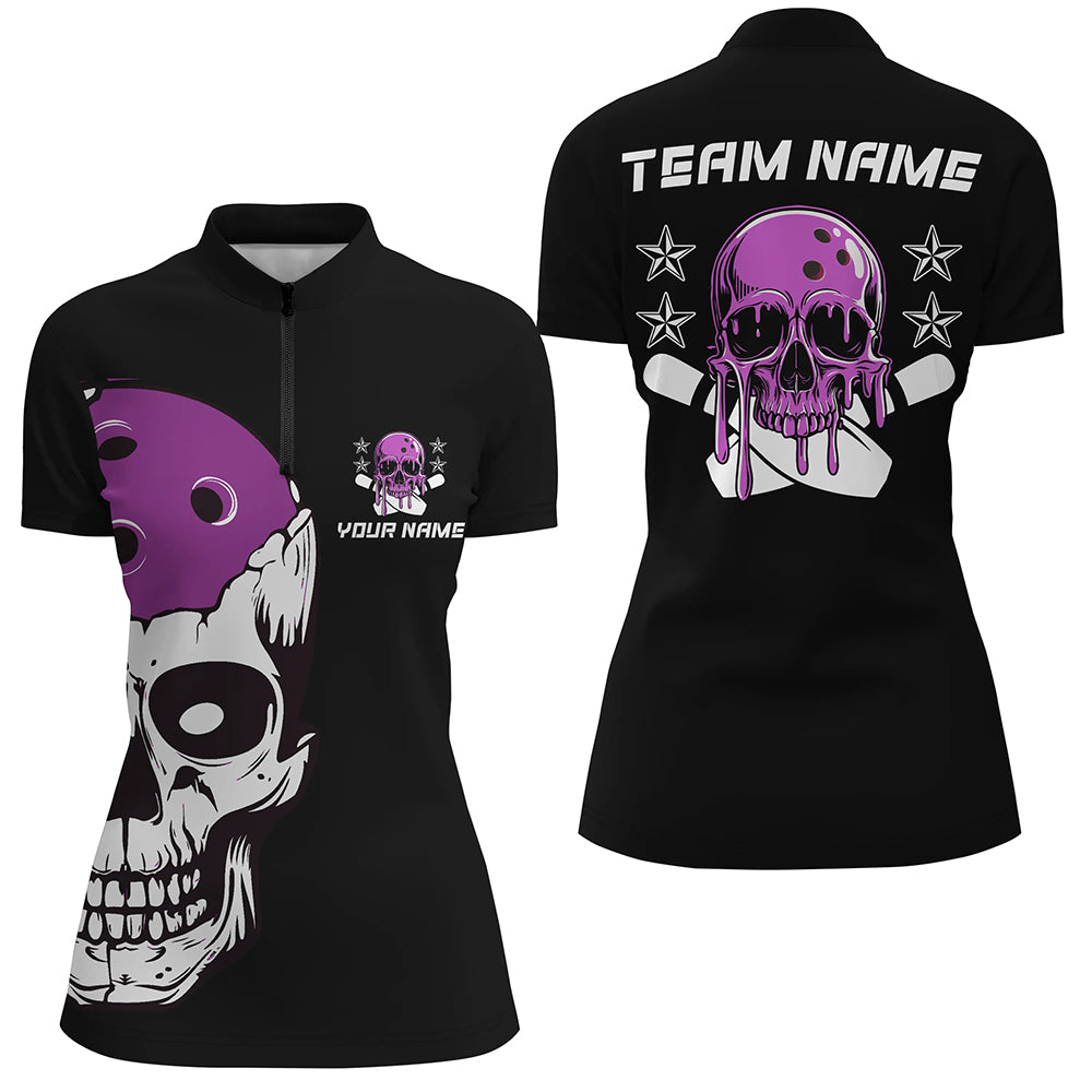 Purple Skull Bowling Ball Custom Women Bowling Team Jerseys, Bowling Tournament Shirts IPHW6721