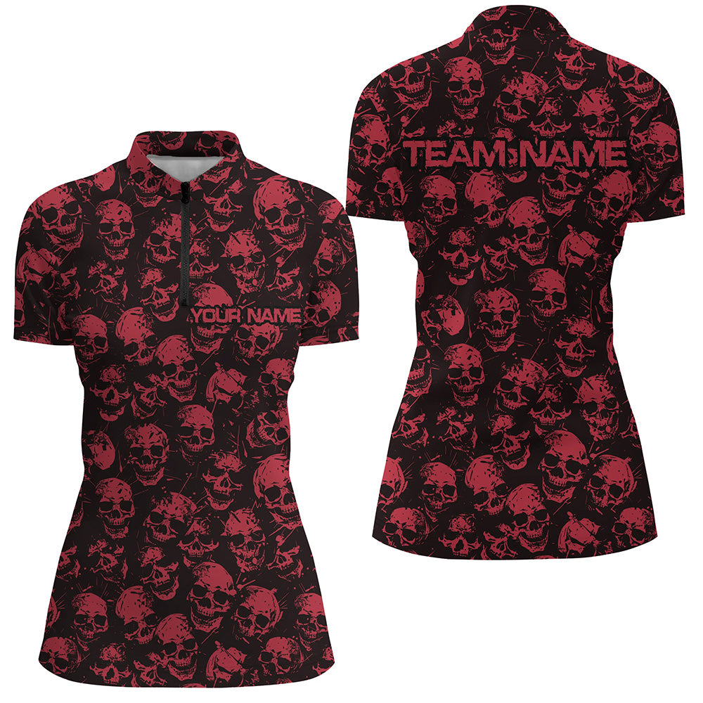 Custom Black And Red Skull Halloween Ladies Bowling Shirts, Halloween Outfits For Bowlers IPHW7163