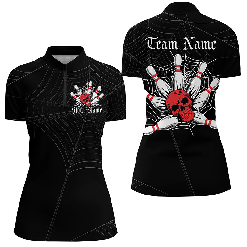 Halloween Coweb Spider Nets Custom Ladies Bowling Shirts, Bowling Halloween Outfit | Red IPHW7375