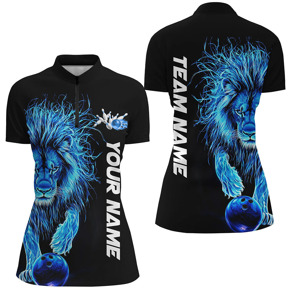 Blue Lion Custom Bowling Short Sleeve Shirts For Women, Lion Bowling Team Shirt Outfits IPHW7527