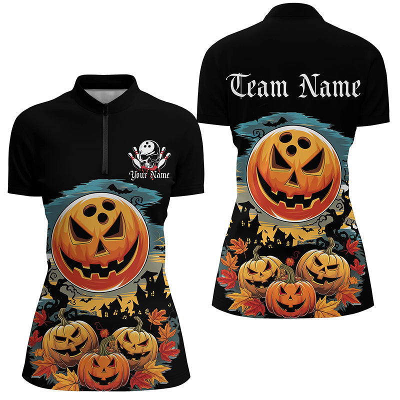 Custom Halloween Bowling Shirts For Women, Pumpkin Bowling Ball Bowling Team Halloween Outfit IPHW7597