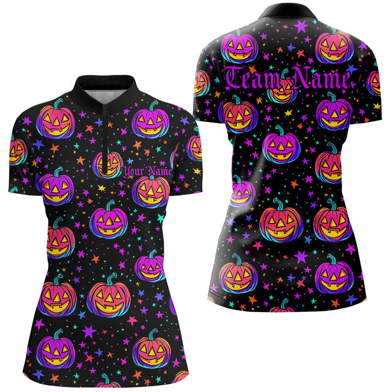 Colorful Pumpkins Custom Halloween Ladies Bowling Shirts, Halloween Team Outfits IPHW7602