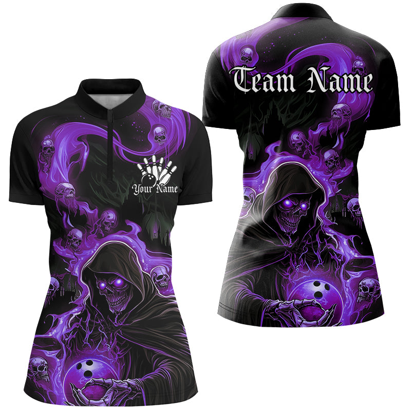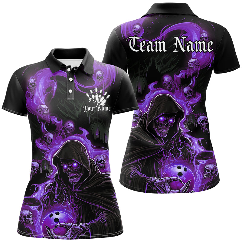 Black And Purple Flame Grim Reaper Custom Halloween Ladies Bowling Shirts, Bowlers Outfits IPHW7610