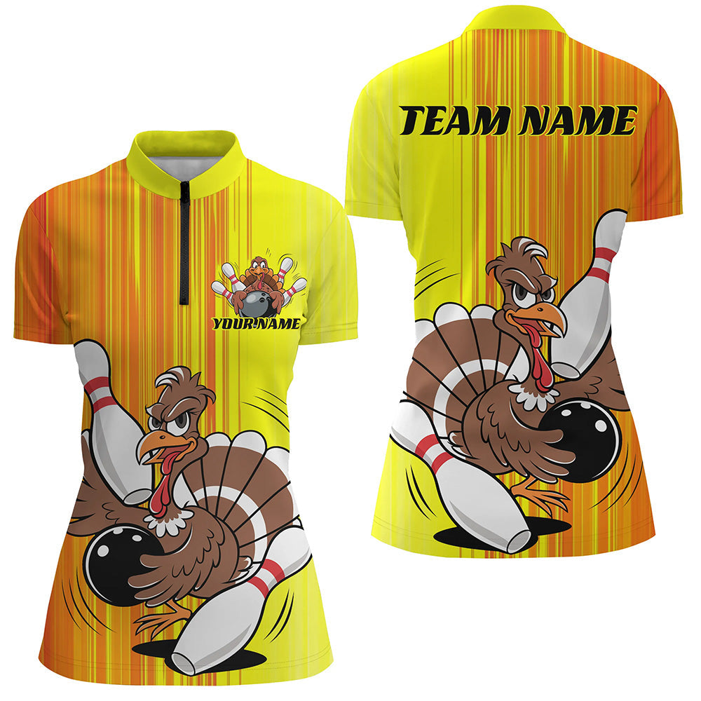 Orange And Yellow Custom Turkey Ladies Bowling Shirts, Thanksgiving Bowling Team Outfits IPHW7660