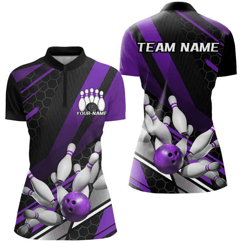 Black And Purple Custom Bowling Team Jerseys, Bowling League Shirts For Women Outfits IPHW7691