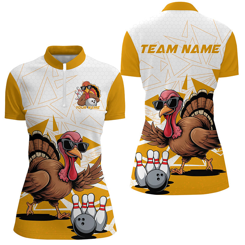 White And Yellow Custom Funny Turkey Ladies Bowling Shirt, Thanksgiving Bowling Team Jersey IPHW7875
