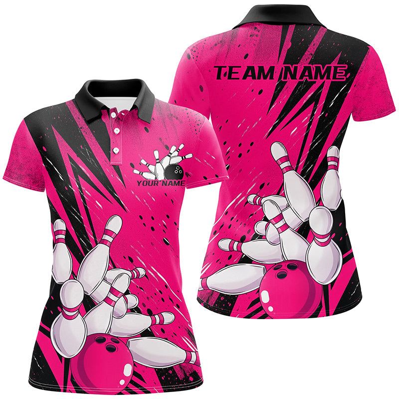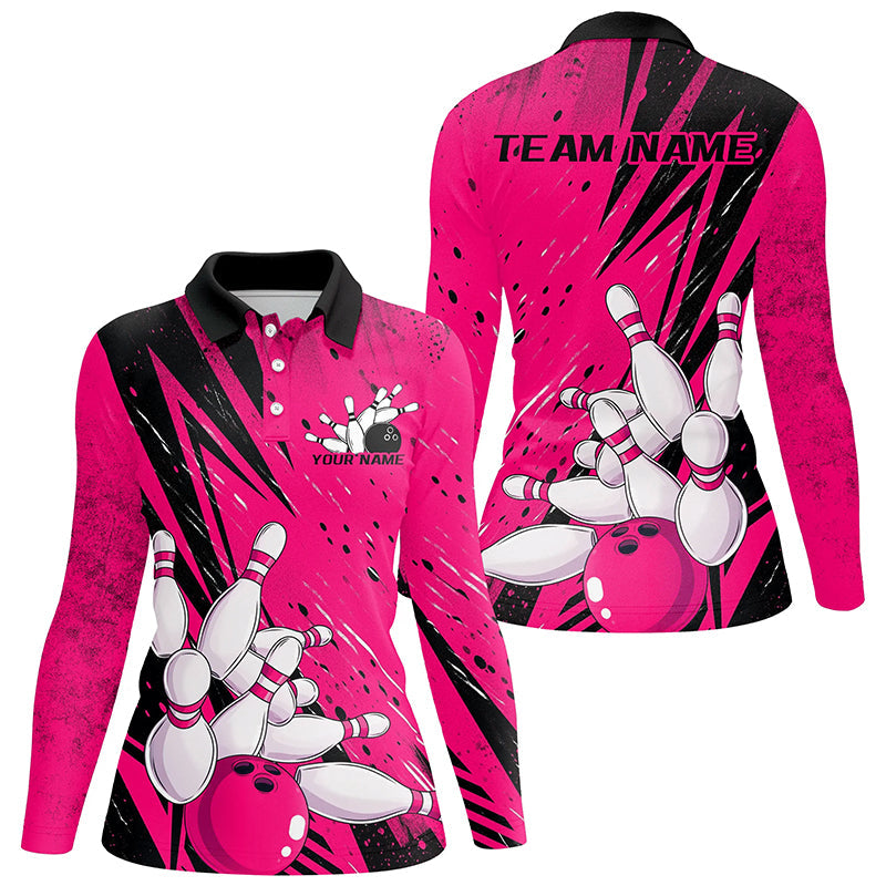 Black And Pink Custom Grunge Ladies Bowling Shirt, Bowling League Shirt Bowling Team Jersey IPHW7908