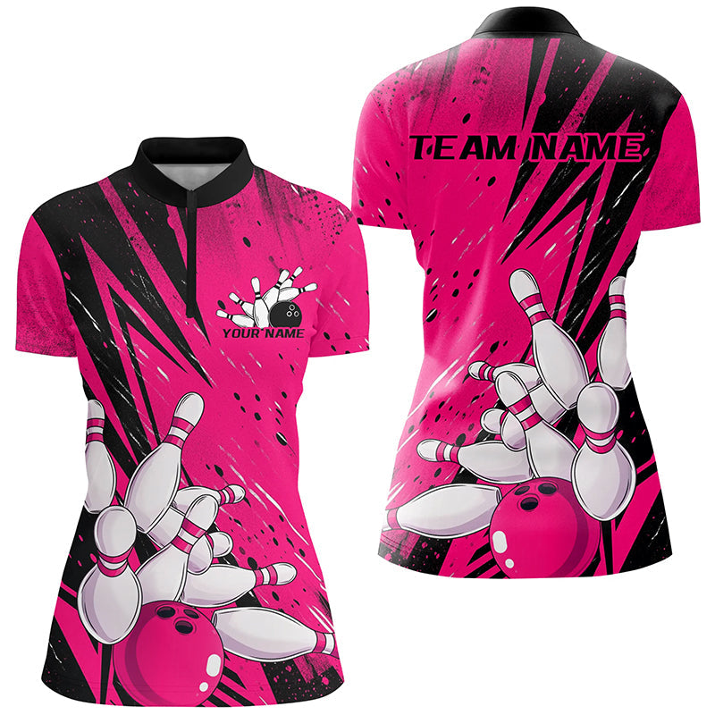 ✔️ Custom Women's Bowling Shirts Our uniquely designed bowling polo and quarter-zip shirts are ideal for proud female bowlers who want to make a bold statement. With a stylish form and distinctive design, these shirts set you apart from the rest, highlighting your passion and confidence in bowling. Add your personal touch to create a one-of-a-kind shirt that carries your unique imprint.
