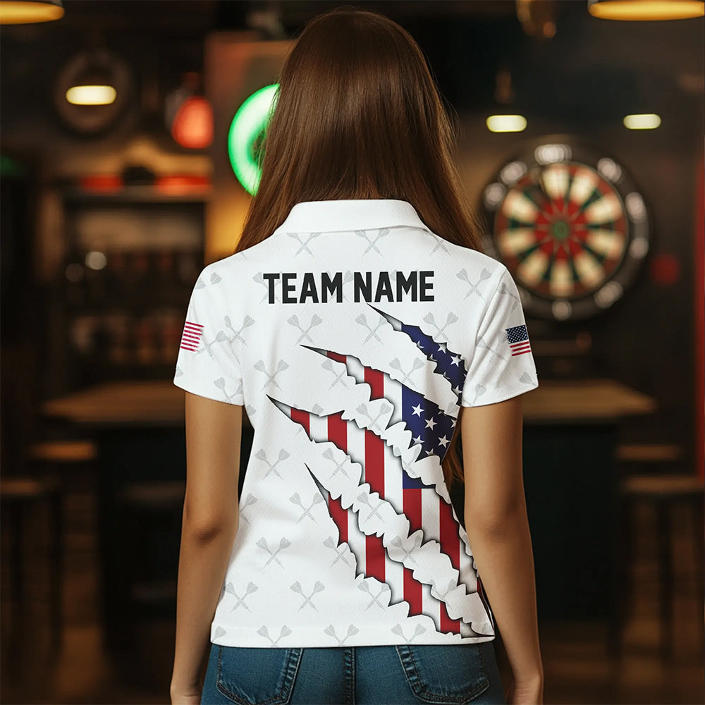 Personalized American Flag Darts Pattern Polo & Quarter-Zip Shirts For Women, Patriotic Darts Jerseys TDM1675