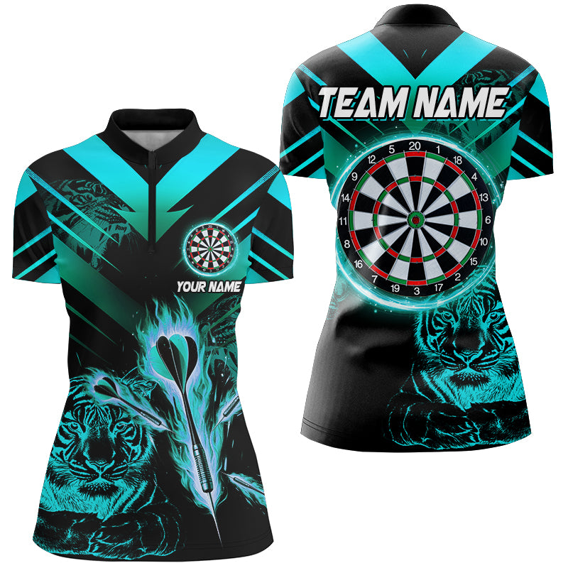 Turquoise Arrow Fire Custom Tiger Darts Shirts For Women, Darts League Team Shirts Dart Jerseys TDM2689