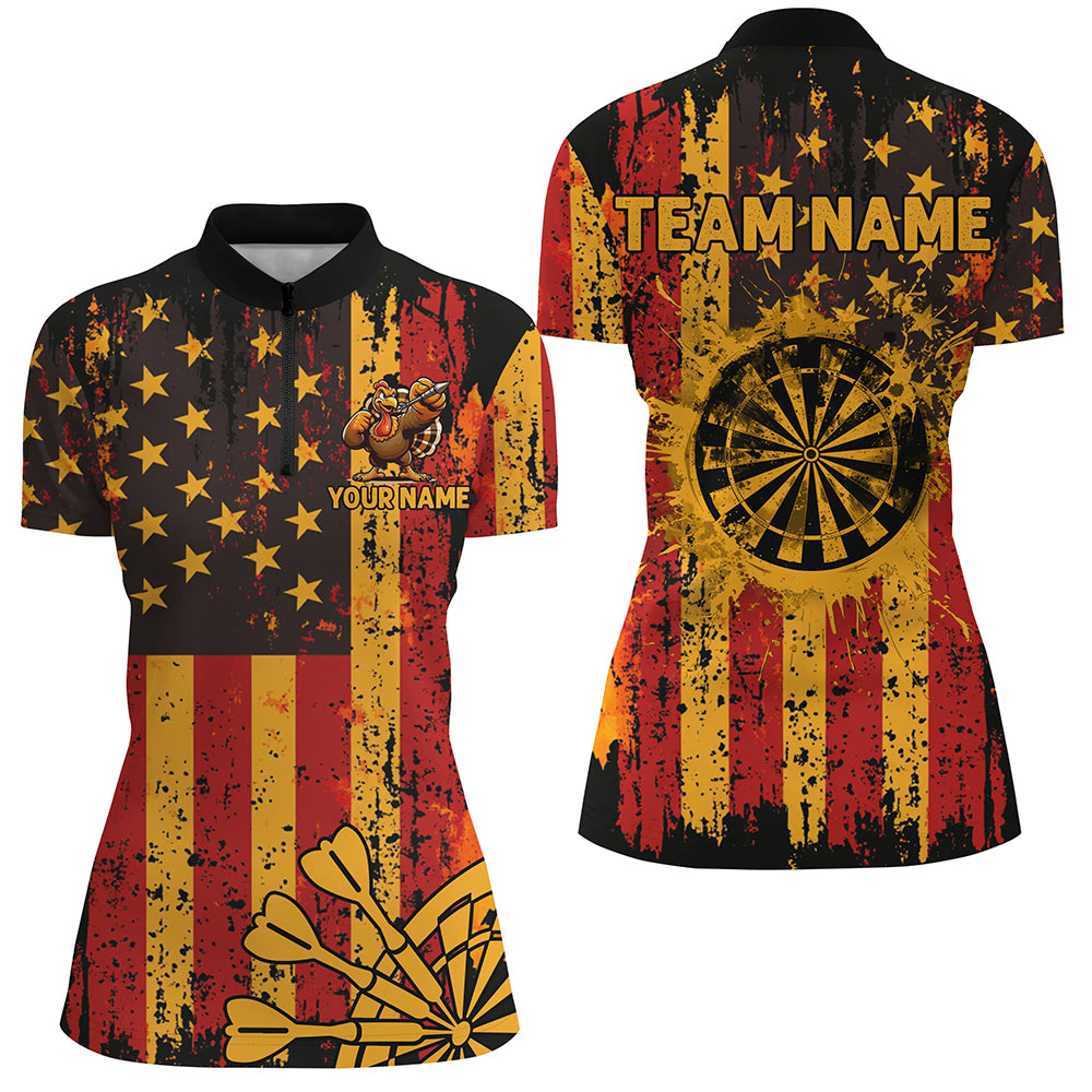 Custom Autumn Grunge US Flag Patriotic Dart Shirts For Women, Thanksgiving Retro Darts Team Jerseys TDM2806