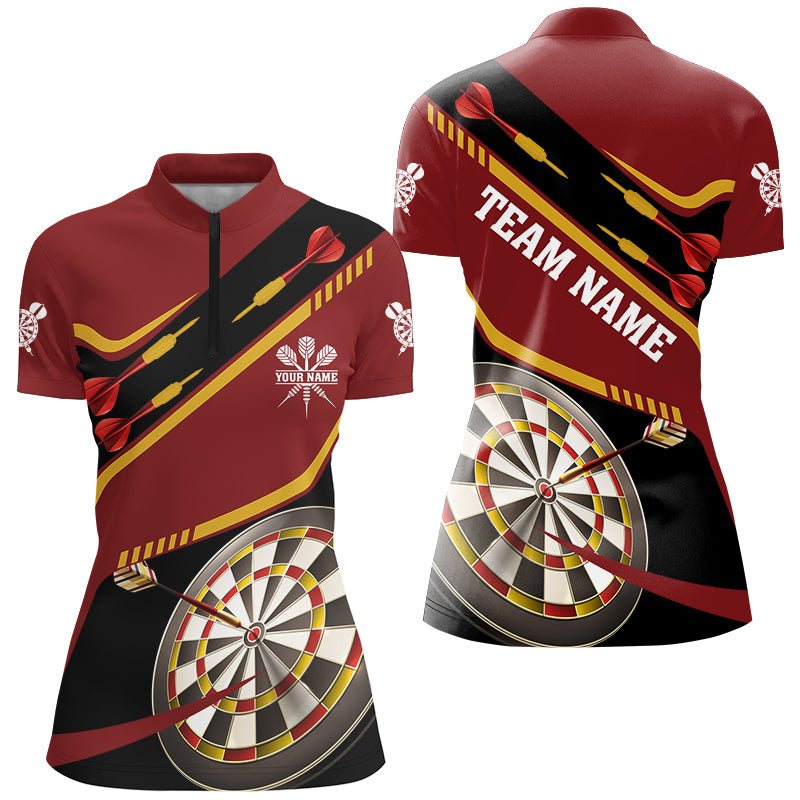 Personalized Red Darts Tournament Polo & 1/4 Zip Shirts For Women Custom 3D Darts Board Team Jerseys TDM2950