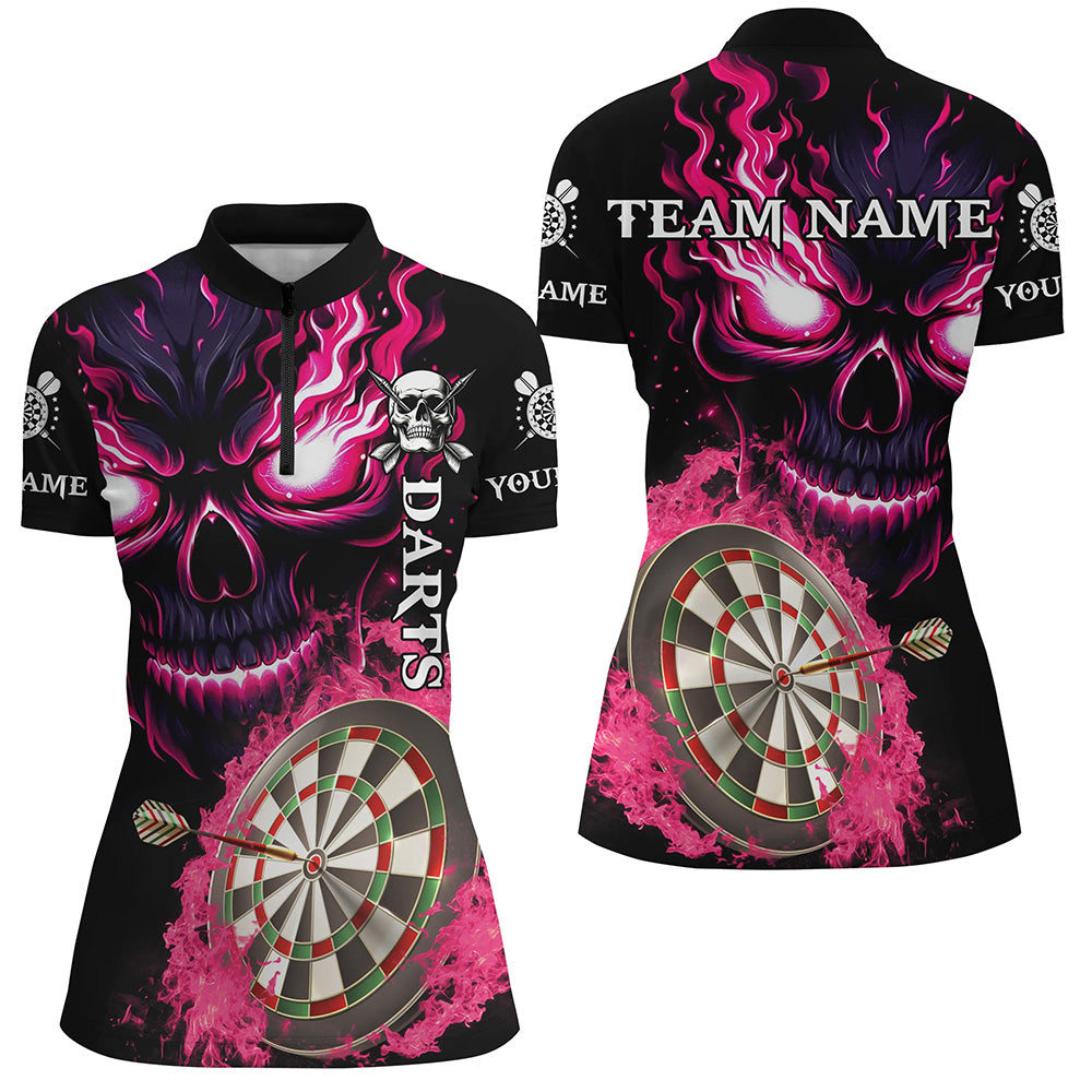 Personalized Pink Darts Board Flame Skull Women Dart Shirts Custom Team League Dart Jerseys Uniform TDM2954