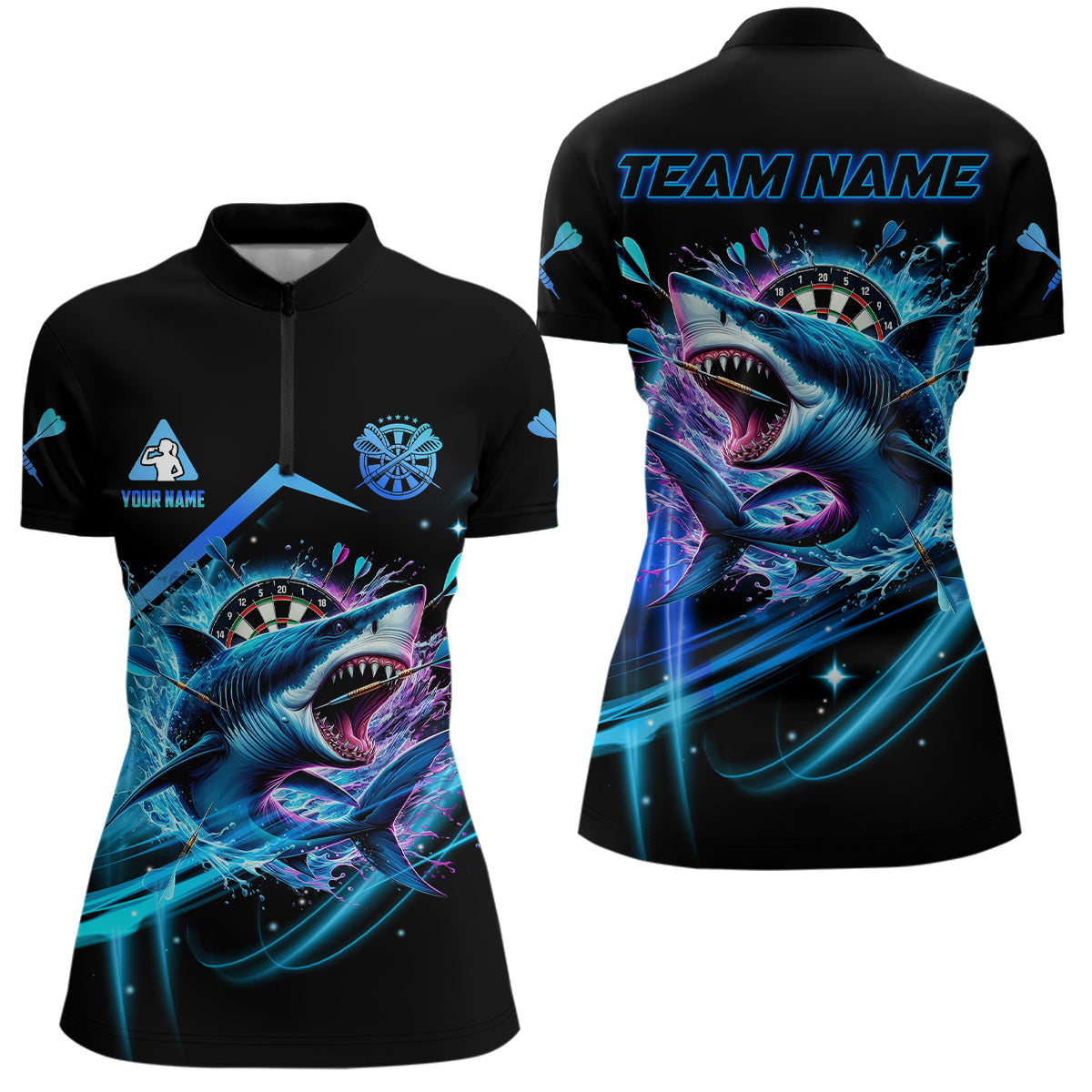 Personalized Blue 3D Darts Board And Shark Women Dart Polo & 1/4 Zip Shirts, Funny Dart Jersey Outfit TDM2957
