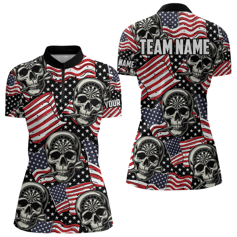 American Flag Skull Pattern Custom Dart Shirts For Women, Patriotic Cool Dart Jerseys Team Uniform TDM3126