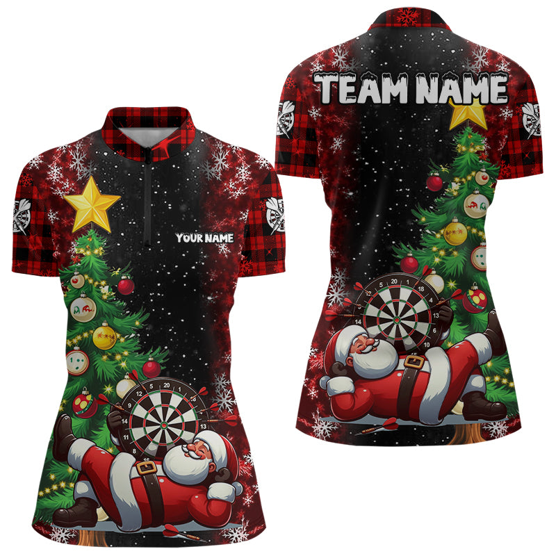 Black And Red Funny Santa Christmas Dart Shirts For Women Custom Christmas Pine Tree Xmas Dart Outfit TDM3130