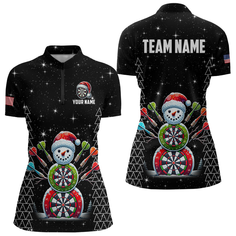 Custom Galaxy Funny Snow Darts Board Christmas Dart Shirts For Women, Santa Xmas Black Dart Jersey TDM3142