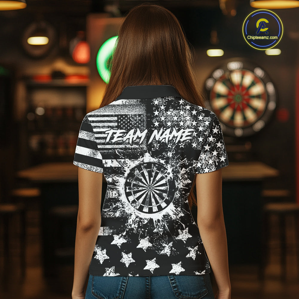 Custom Black Grunge US Flag Patriotic Darts Shirt For Women, Retro Darts Board Darts Team Jerseys TDM3155