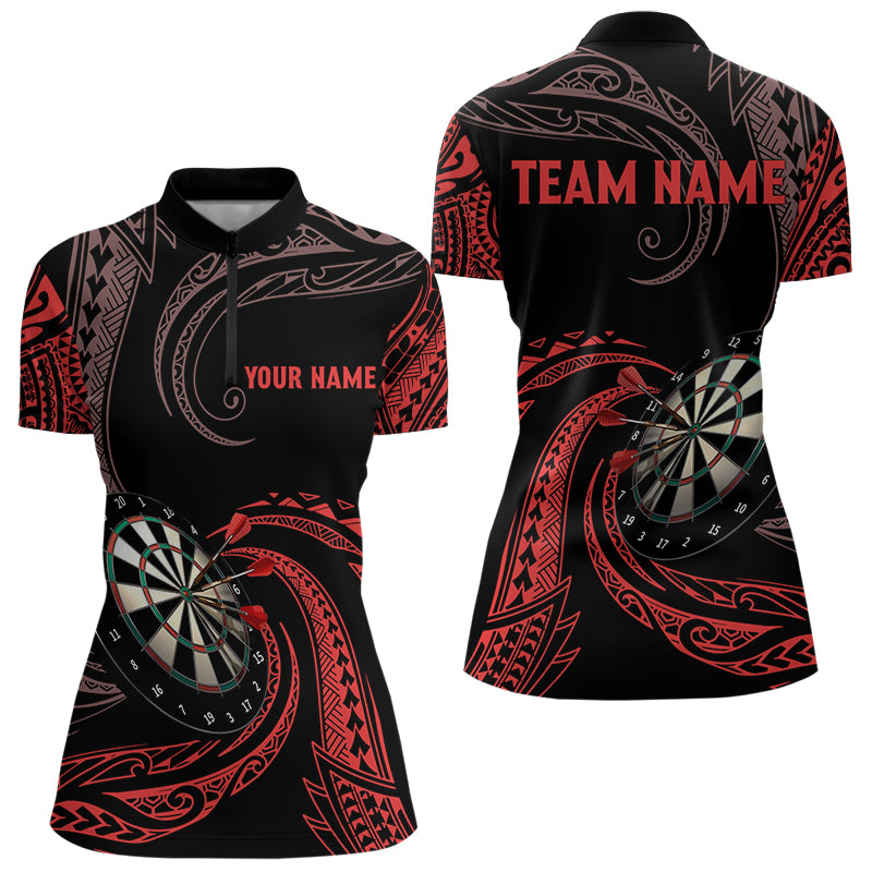 Personalized Red Roll Tribal Darts Polo & Quarter Zip Shirts Custom Women Darts Shirts Dart Jerseys TDM3185