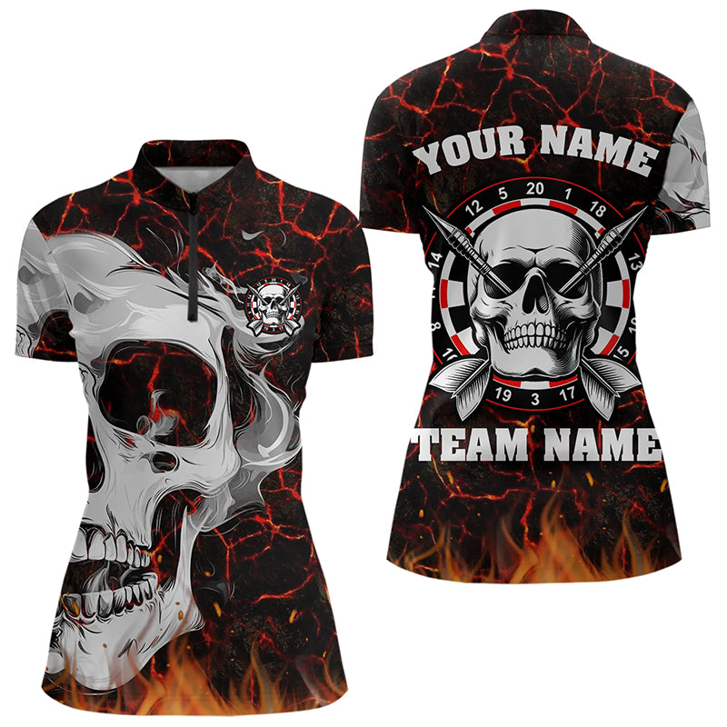 Personalized Red Glowing Fire Crack Skull Dart Shirts Custom Scary Dart Shirts For Women Dart Jersey TDM3267