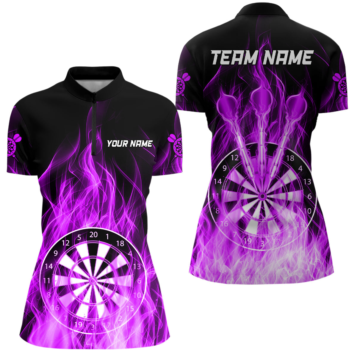 Fire Flame Dartboard 3D Darts Polo & Quarter Zip Custom Dart Shirts For Women Dart Jerseys |Purple TDM3299