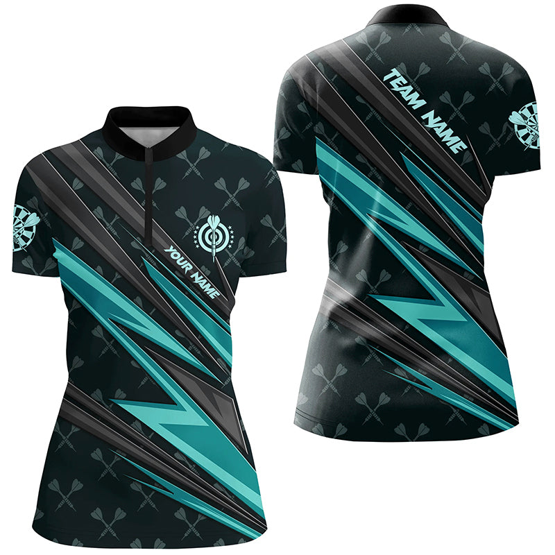 Personalized Turquoise Dart Jerseys Women Dart Polo & Quarter Zip Shirt Custom Team League Dart Shirt TDM3368