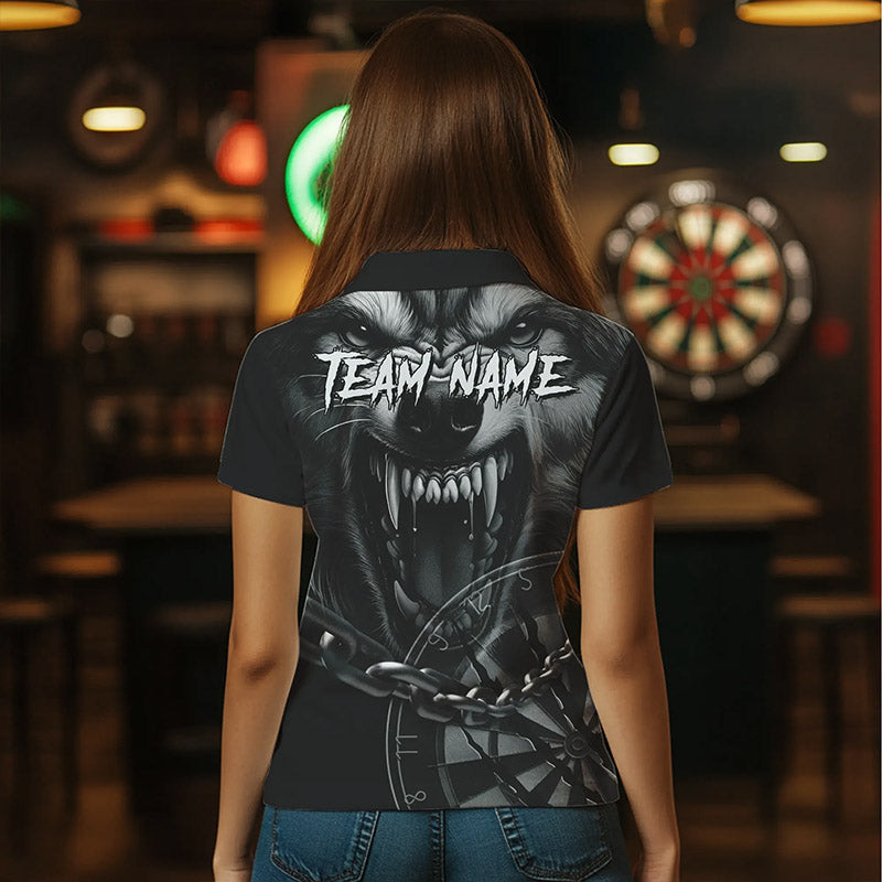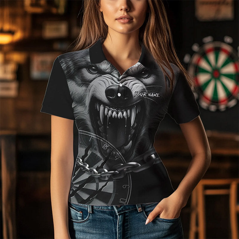 Personalized Snarling Wolf Darts Polo & Quarter Zip Custom Dart Shirts For Women Cool Dart Jerseys TDM3374
