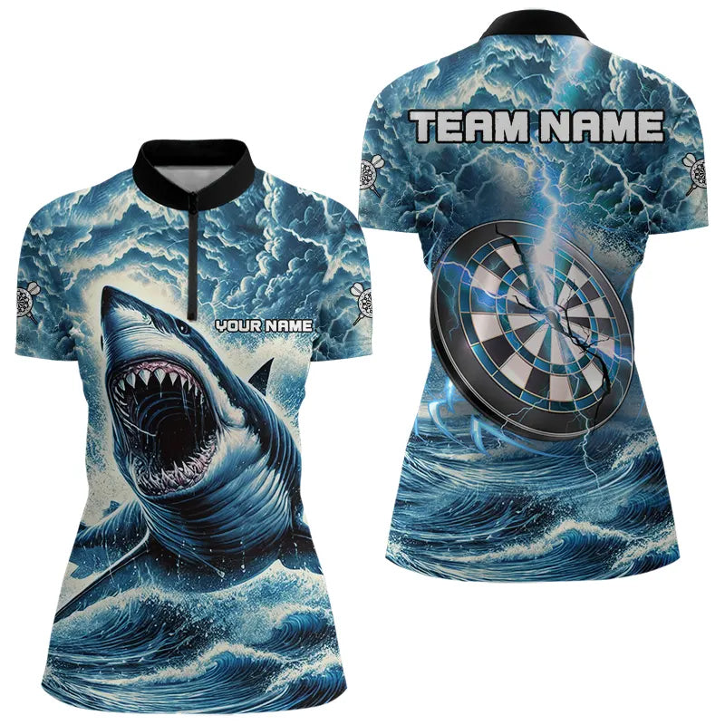 Personalized Shark Blue Lightning Darts Polo & Quarter Zip Custom Dart Shirts For Women Dart Jerseys TDM3442