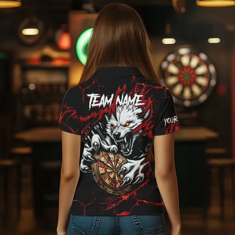 Personalized Wolf Lightning Darts Polo & Quarter Zip Custom Dart Shirts For Women Darts Jerseys |Red TDM3443