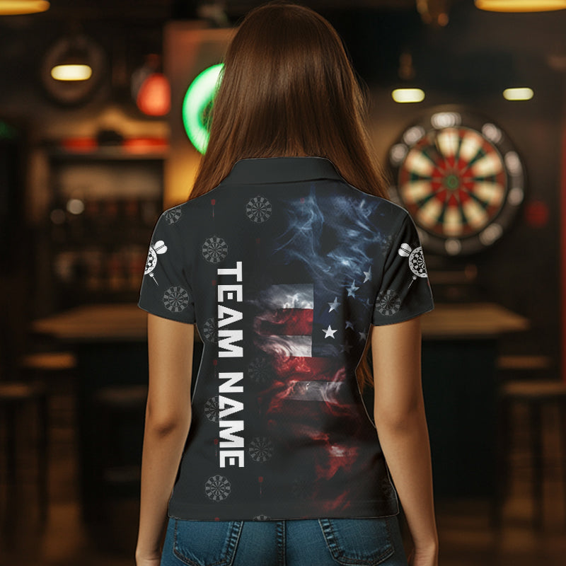 Smoke American Flag Darts Polo, Quarter-Zip Shirt Custom Patriotic Dart Shirts For Women Dart Jerseys TDM3454