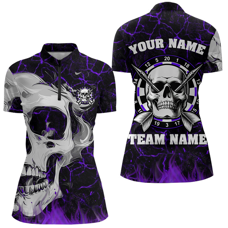Personalized Purple Glowing Fire Crack Skull Dart Shirt Custom Dart Shirts For Women Dart Team Jersey TDM3493