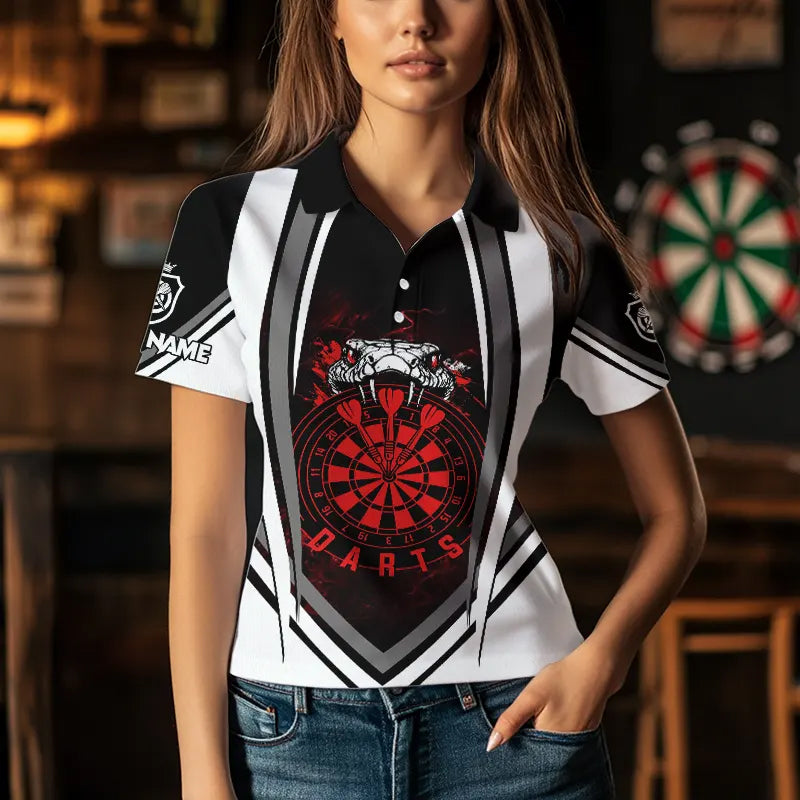 Personalized Black White Cobra Snake Dart Shirts For Women Custom Team Outfit Darts Jerseys | Red TDM3586